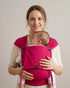 Ajustes mediante correas con rango mínimo y máximo; Si la contextura del adulto es muy delgada, puede recomendarse un fular como alternativa.